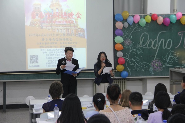院长彭又新、副院长王轶、团委书记赵海涛、俄语系全体师生、以及来自吉林大学、东北师范大学等长春市各大高校的俄语外教和学生代表。晚会由俄语系主任曲雅静主持、院长彭又新致开幕词。