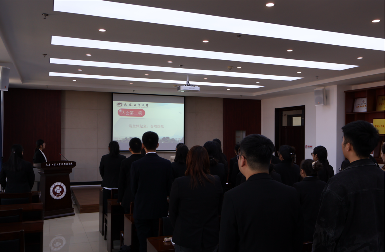 校歌声中圆满落幕。新一届研究生会主席团成员与代表们合影留念,标志着pg电子