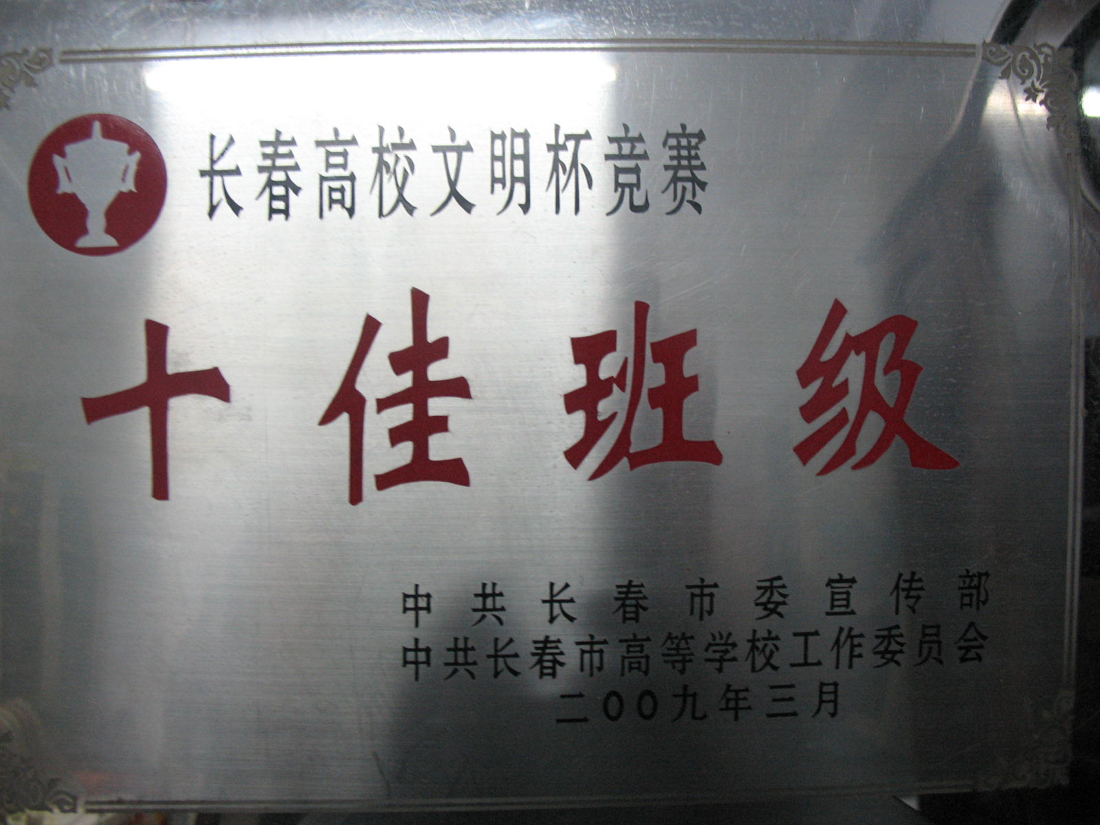 班级在长春高校文明杯竞赛中获得“十佳班级”称号